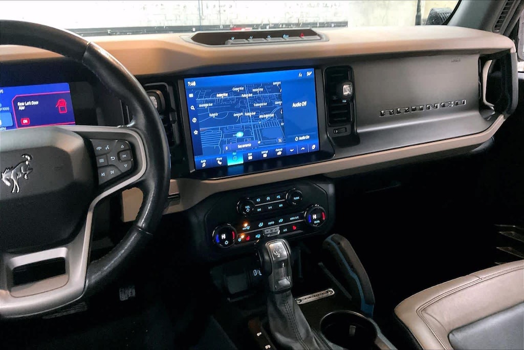 EQUIPMENT GROUP 354A LUX PACKAGE Connected Built-In Navigation, 3 years of service, pinch-to-zoom capability, live traffic, predictive destinations and route guidance, Navigation service requires SYNC4 and FordPass Connect, complimentary connect service and the FordPass app (see FordPass Terms for details), Customer receives a complimentary 3-year trial of navigation services when an eligible vehicle is added to a members FordPass account, Trial period begins w/new vehicle warranty start date, At the end of the complimentary period, access to connected navigation services will be discontinued, Connected service and features depend on compatible AT&T network availability, Evolving technology/cellular networks/vehicle capability may limit functionality and prevent operation of connected, MEDIUM SANDSTONE W/BLACK, HEATED LEATHER-TRIMMED/VINYL BUCKET SEATS 10-way power driver seat, 8-way front passenger seat and second row armrest w/2 beverage holders, TRANSMISSION: 10-SPEED AUTOMATIC trail control, trail turn assist and trail one-pedal driving (STD).